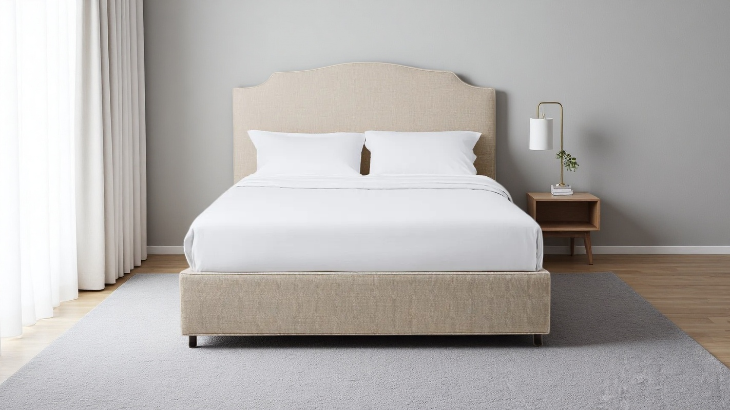 Lit double tapissé tissu 215x180x120 cm - beige - style contemporain pour chambre